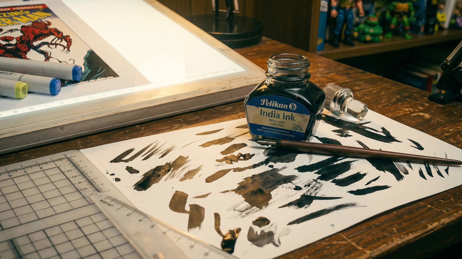 Negli anni ’90, fare l’illustratore o il disegnatore è un mestiere fisicamente diverso da quello di oggi. Tutto passa per le mani: fogli sporchi di grafite, dita macchiate di china, tavoli luminosi accesi per ore, e un ritmo più lento, più artigianale, quasi meditativo.