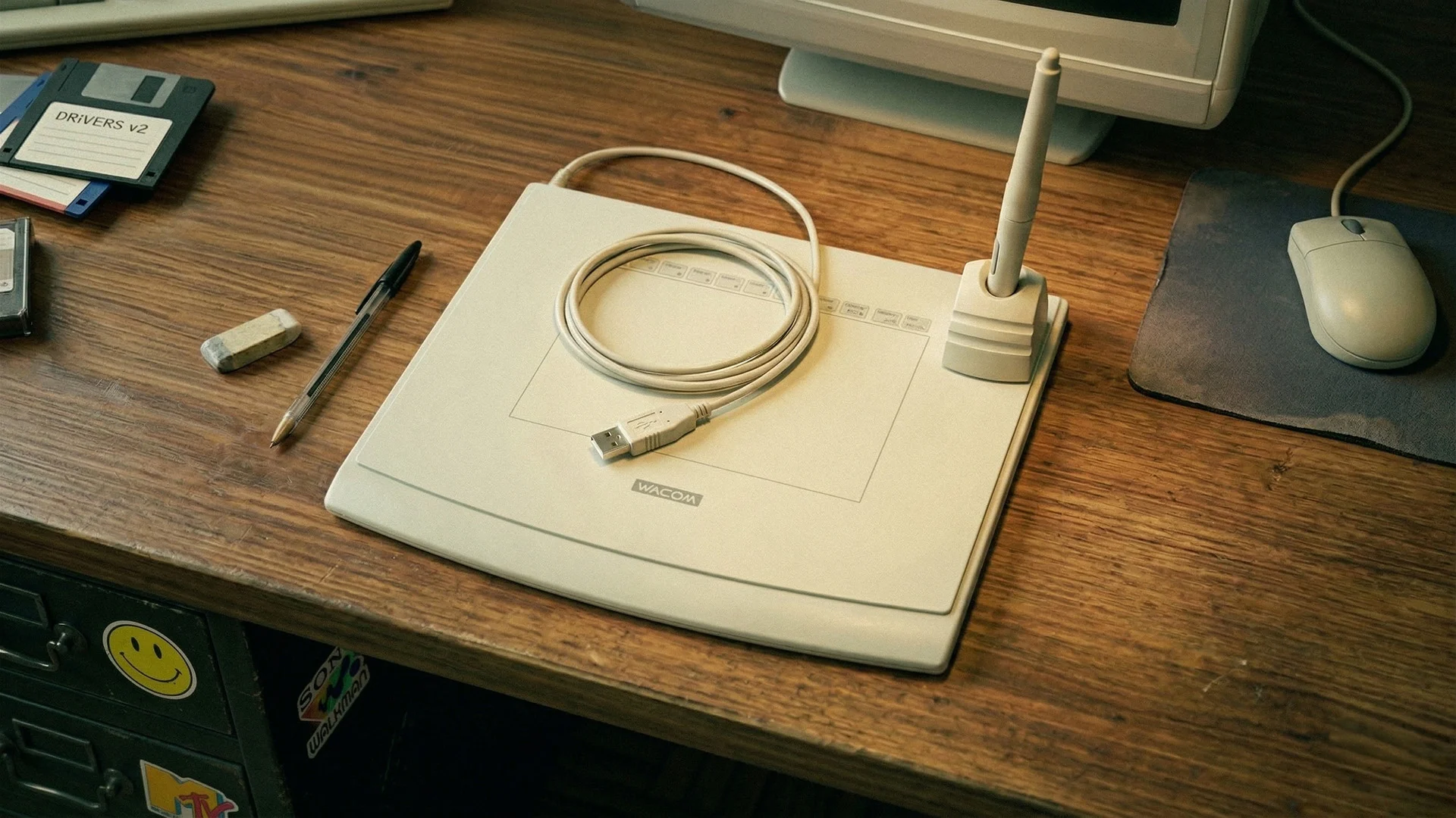 La prima volta che sento parlare di una tavoletta grafica è a metà degli anni ’90, leggendo per caso un articolo su una rivista di informatica. Cita una marca allora sconosciuta: Wacom. Quelle poche righe mi incuriosiscono abbastanza da spingermi, mesi dopo, alla SMAU di Milano (all’epoca la fiera tech più importante d’Italia) con un obiettivo solo: trovarla e provarla. Ricordo ancora quando appoggio la penna ottica sulla superficie della tavoletta e il tratto appare sullo schermo con una naturalezza quasi fastidiosa, perché significa che tutto sta per cambiare.