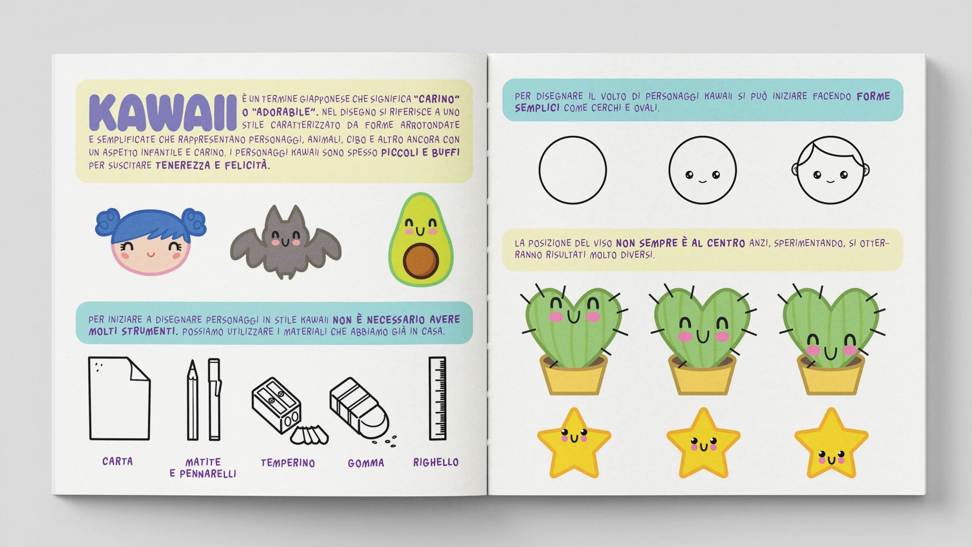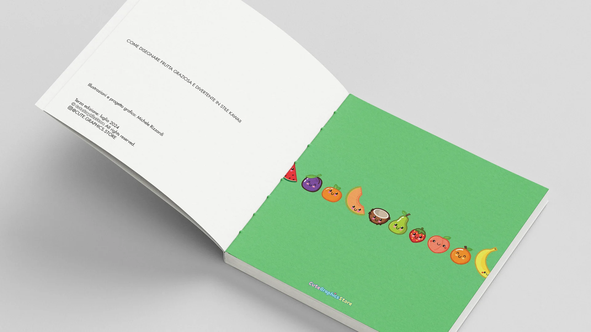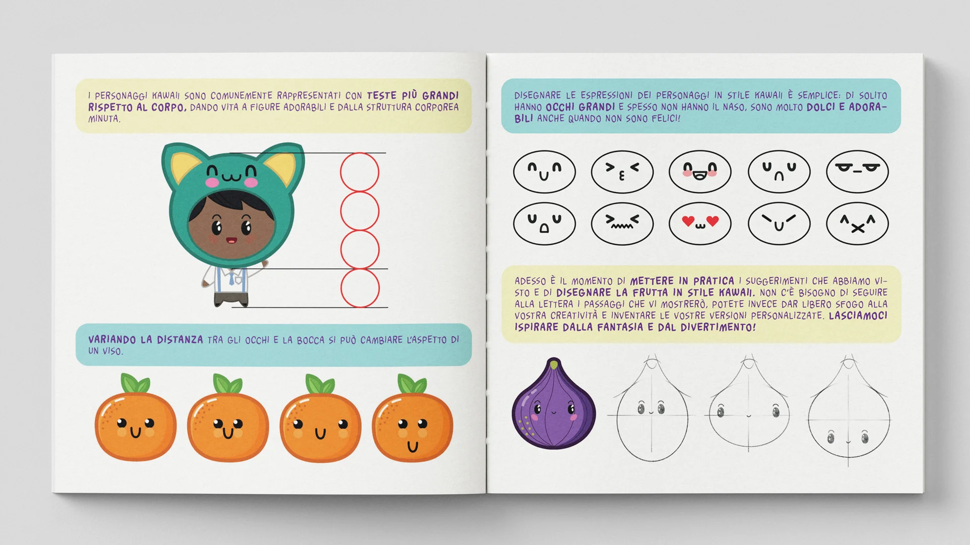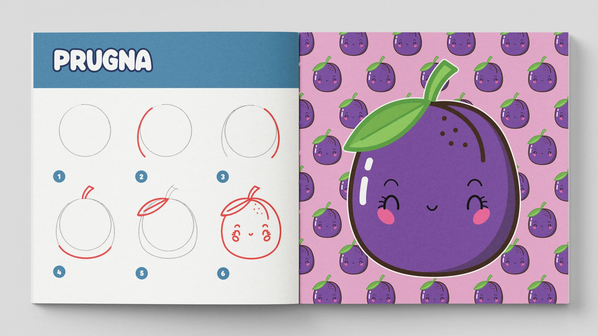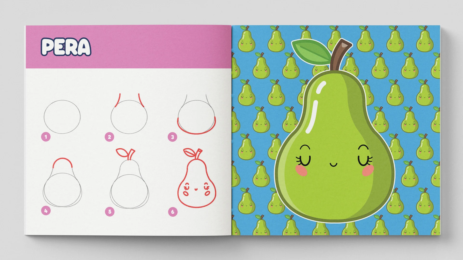 Un libro che insegna a disegnare passo dopo passo la frutta in stile kawaii.