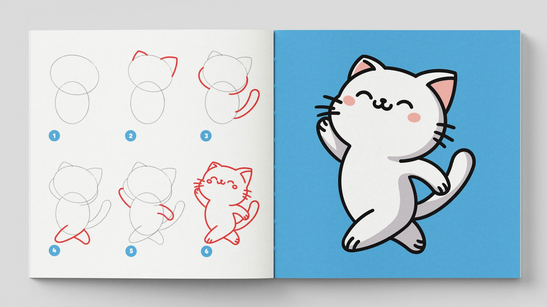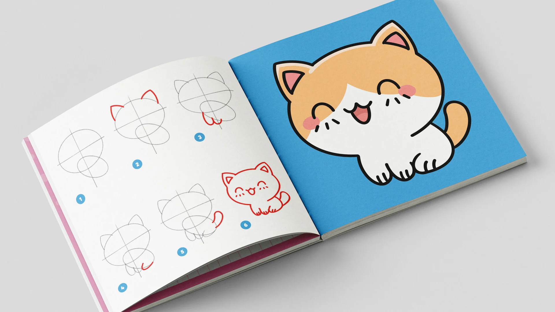Un libro che insegna a disegnare passo dopo passo gatti carini in stile kawaii.