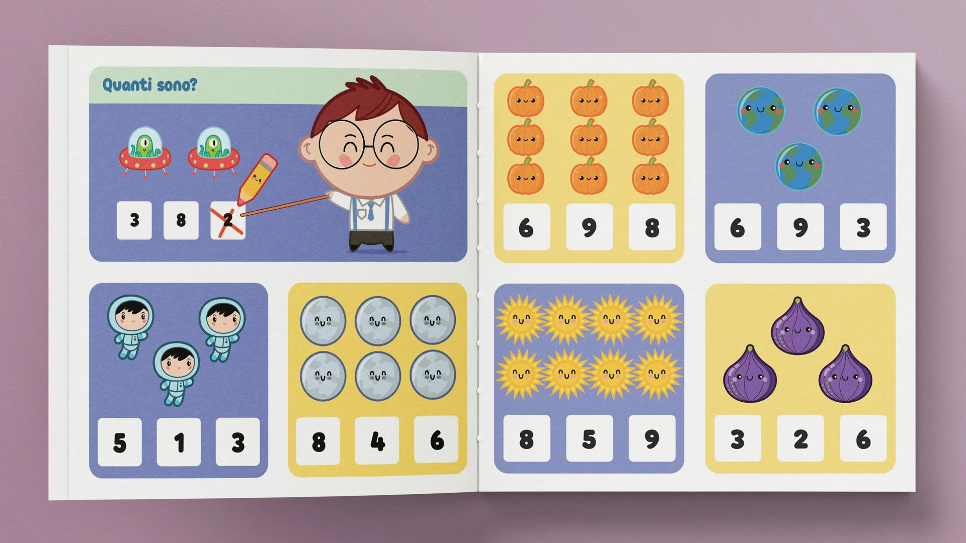 Un libro divertente e colorato per imparare a contare con 50 pagine di attività e giochi stimolanti e colorati che sviluppano l’immaginazione e la creatività.