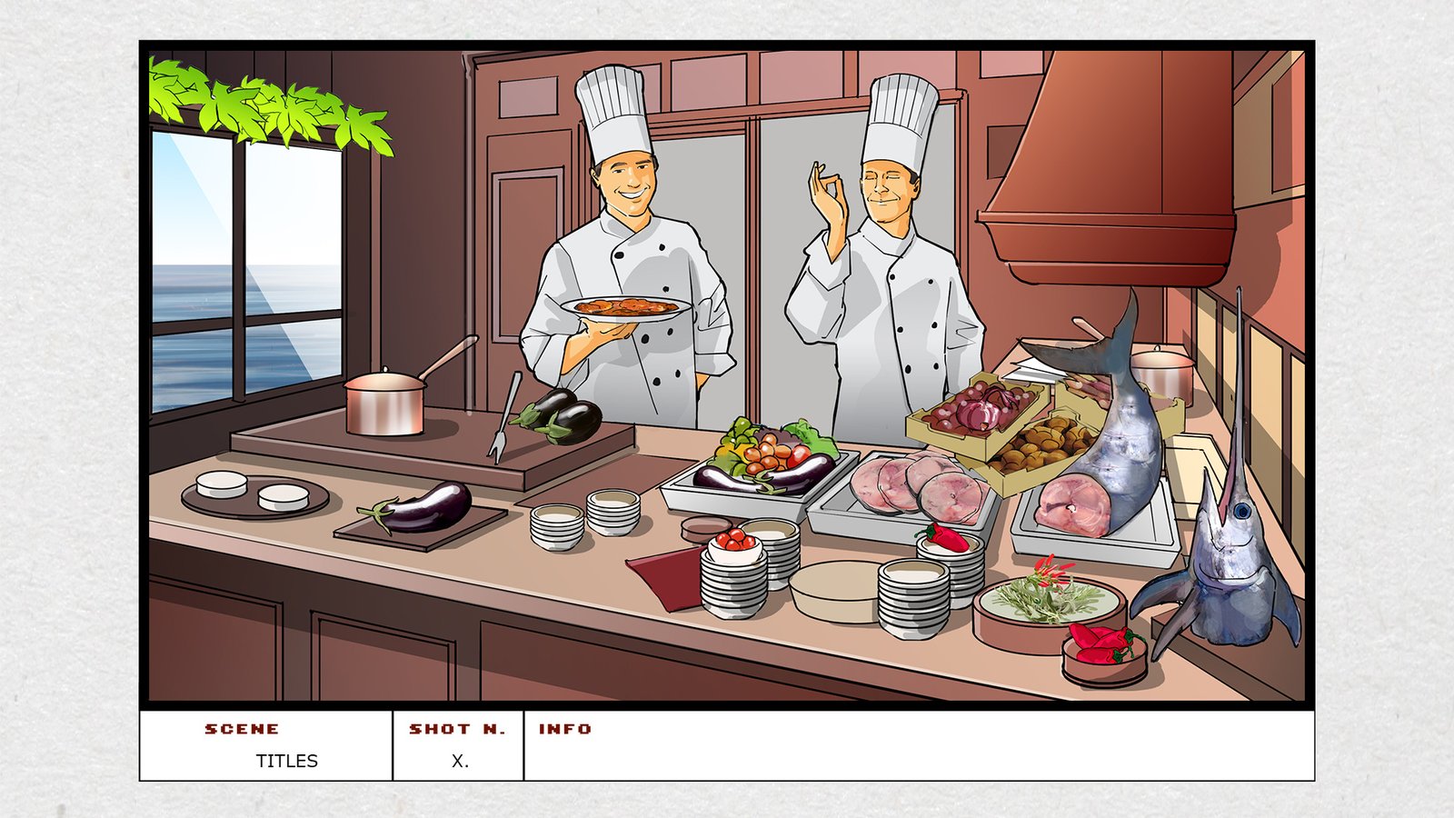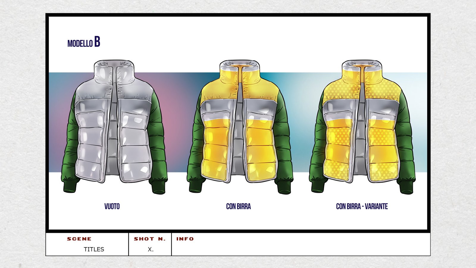 Storyboard character frame per spot TV